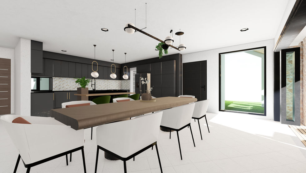 Our new design in Crowhill, Harare, presents a modern, natural aesthetic with a white facade accented by timber and stone cladding. This spacious 4-bedroom house is situated on a generous plot, featuring a central outdoor space with a pool that serves as the heart of the home's design.